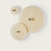 - Die naturfarbene Rattanscheibe, 30 cm kommt mit einer goldenen Wandbefestigung, mit der die Scheibe einen Abstand von 10 cm von der Wand hat